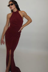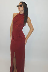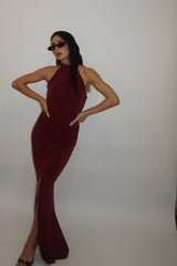 dress high neck burgundy