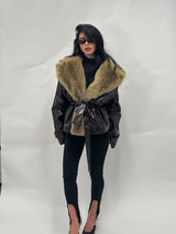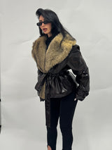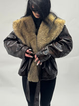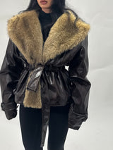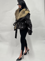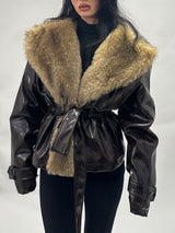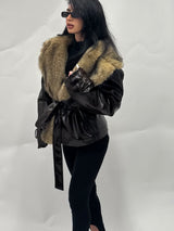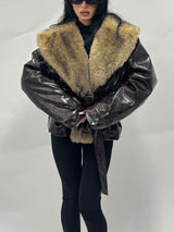 Ecopelle , collo in pelliccia non rimovibile foderato in raso indosso S/M
