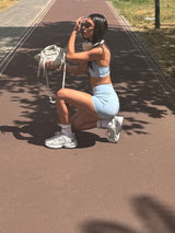 Shorts leggings v-cut scrunch light blue